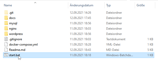 ⚠ Der MySQL Server braucht beim ersten Start ein wenig länger, um das Initiale Datenbank-Setup durchzuführen. Sollte die Seite also Melden "Error connecting to database..." o.ä., könnte es vielleicht helfen, noch 1-2 Minuten zu warten und ggf. den Log des MySQL Docker Containers im Dashboard zu prüfen.